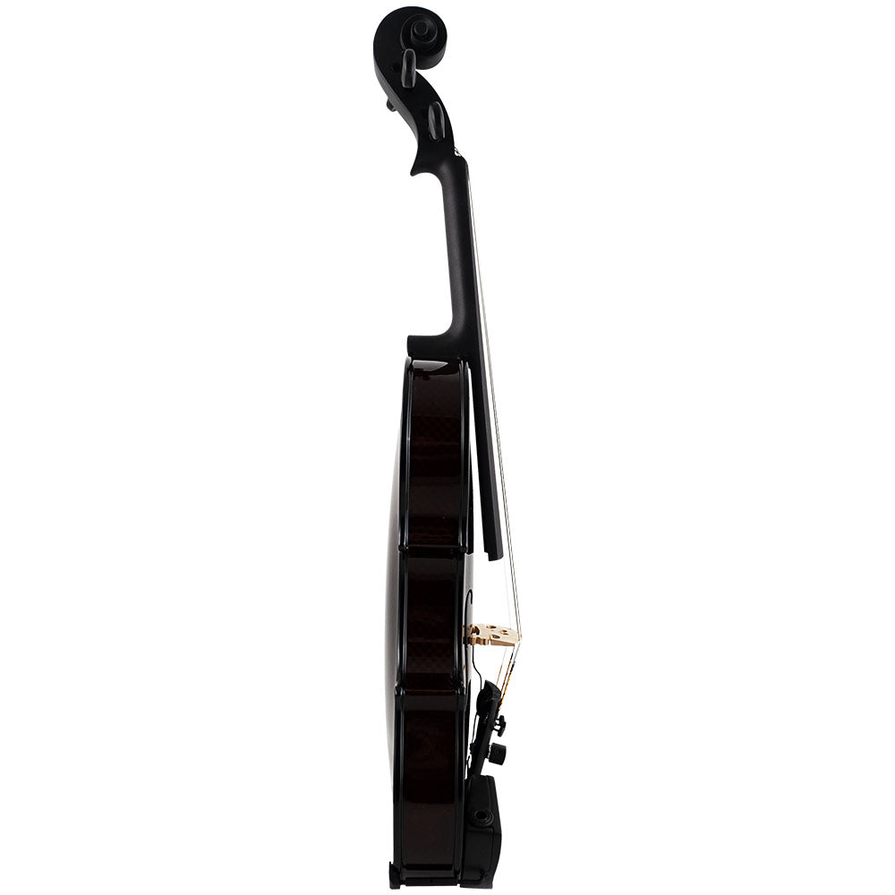 This outfit’s centerpiece is the Glasser Carbon Composite Acoustic Electric violin combines the advanced technology of the acoustic instrument with state-of-the-art electronics by Bartolini. This allows for the instrument to be played either acoustically or plug in to the Glasser Swordtail active chinrest system. It features a high-gloss clear coat over a colored dye coat, showcasing the distinctive carbon fiber weave. The instrument is set up with Larsen strings and Planetary Pegs.