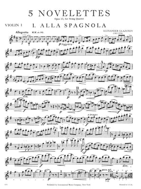 Glazunov, Alexander - Five Novelettes, Op 15 - String Quartet - International Edition