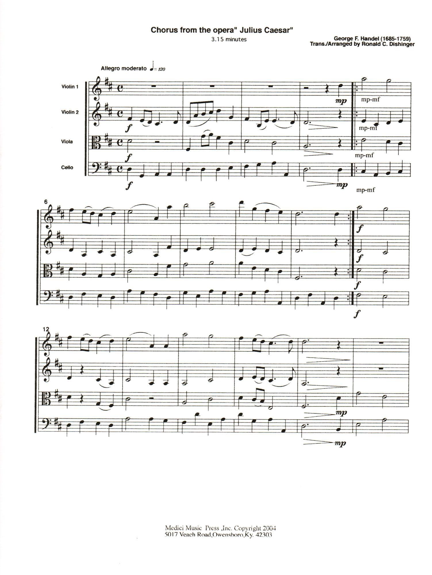Handel, George Friderich - Chorous from "Julius Caesar" - for String Quartet - arranged by Ronald C. Dishinger - Medici Music Press