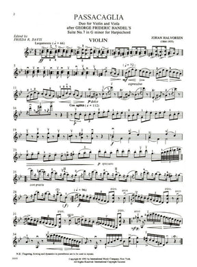 Handel/Halvorsen - Passacaglia - Violin and Viola - Score and Parts - edited by Frieda R Davis and Nathan Stutch - International Edition
