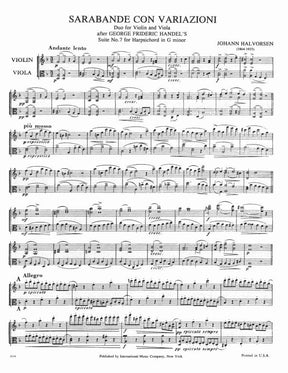 Handel/Halvorsen - Sarabande con Variazioni - Violin and Viola - Score and Parts - International Edition