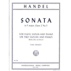 Handel, George Frideric - Sonata In F Major, Op 2, No 5, HWV 390 - Flute (or Violin), Violin, and Piano - edited by Emil Krause - International Edition