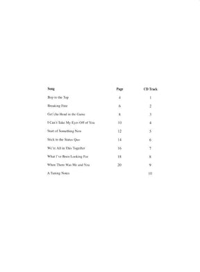 Nine songs from the hit Disney Channel original movie: Includes Bop to the Top, Breaking Free, Getcha Head in the Game, I Cant Take My Eyes off of You, Start of Something New, Stick to the Status Quo, Were All in This Together, What Ive Been Looking For, When There Was Me and You.