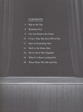 Nine songs from the hit Disney Channel original movie: Includes Bop to the Top, Breaking Free, Getcha Head in the Game, I Cant Take My Eyes off of You, Start of Something New, Stick to the Status Quo, Were All in This Together, What Ive Been Looking For, When There Was Me and You.