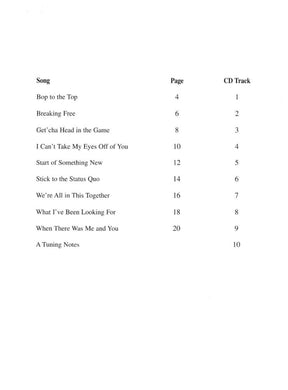 Nine songs from the hit Disney Channel original movie: Includes Bop to the Top, Breaking Free, Getcha Head in the Game, I Cant Take My Eyes off of You, Start of Something New, Stick to the Status Quo, Were All in This Together, What Ive Been Looking For, When There Was Me and You.