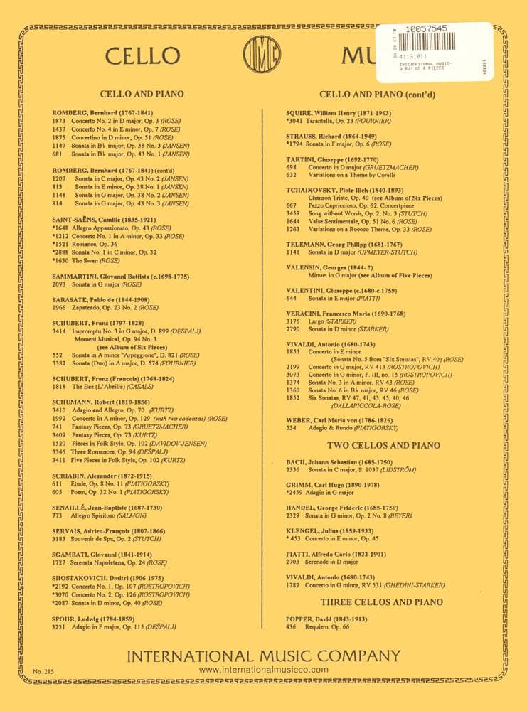 Album of 6 Pieces for Cello and Piano - International Music Co