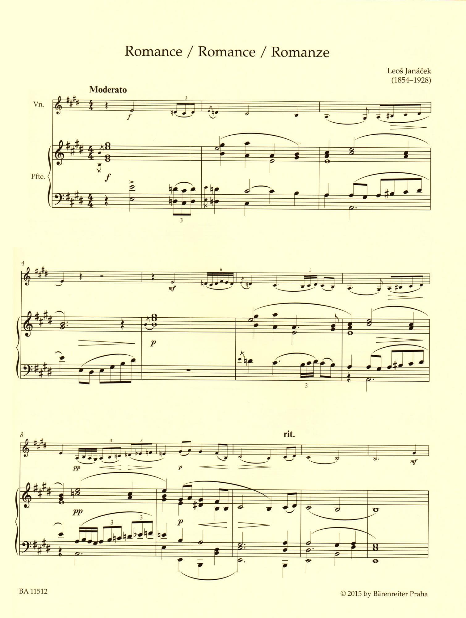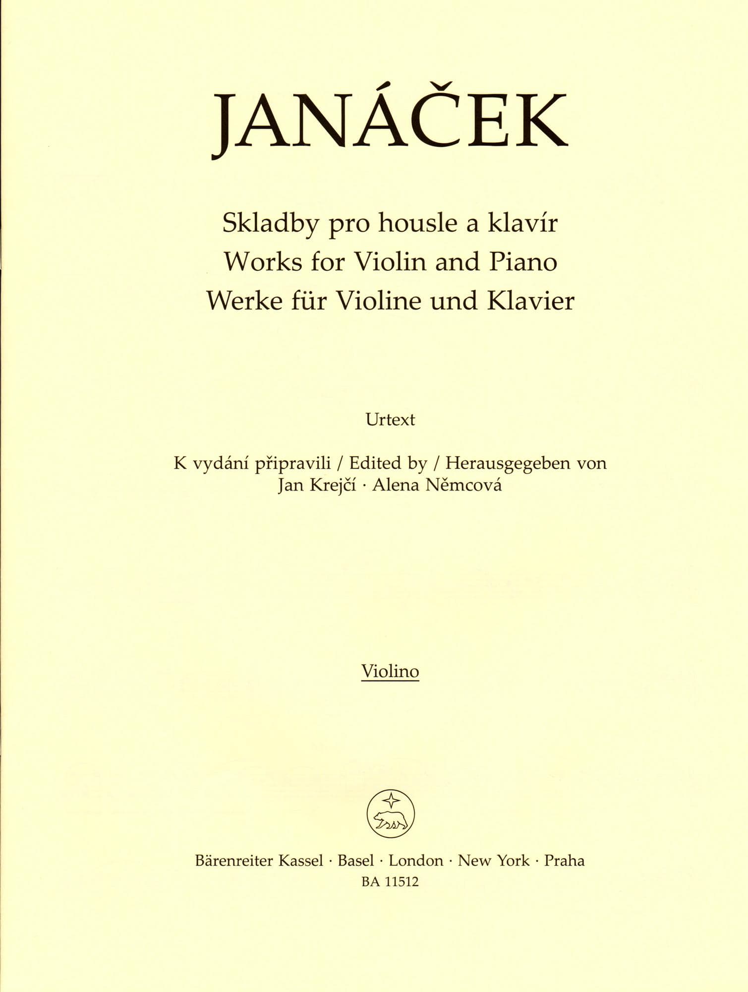 Janáček, Leoš - Works for Violin and Piano - Score and Parts - edited by Jan Krejčí and Alena Němcová - Bärenreiter Verlag URTEXT