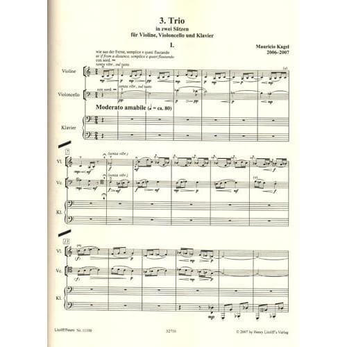 Kagel, Maurice - 3 Trio in Two Movements, for Piano Trio (Violin, Cello and Piano) Published by Edition Peters