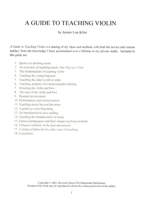 Jennie Lou Klim - A Guide to Teaching Violin - Beachside Publications