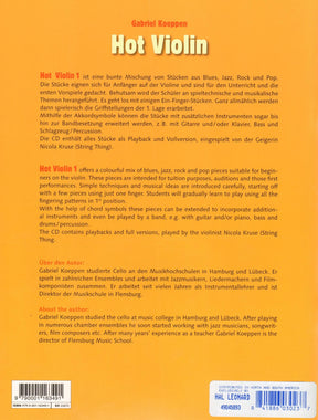 Hot Violin 1 offers a colourful mix of blues, jazz, rock, and pop pieces suitable for beginners on the violin. These pieces are intended for tuition purposes, auditions, and those first performances. Simple techniques and musical ideas are introduced carefully, starting off with a few pieces using just one finger. Students will gradually learn to play using all the fingering patterns in 1st position. With the help of chord symbols, these pieces can be extended to incorporate additional instruments. The CD contains playbacks and full versions, played by the violinist Nicola Kruse (String Thing).