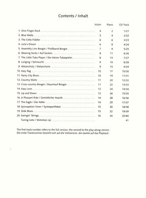 Book includes a bound violin part, a pull-out piano score, and CD.