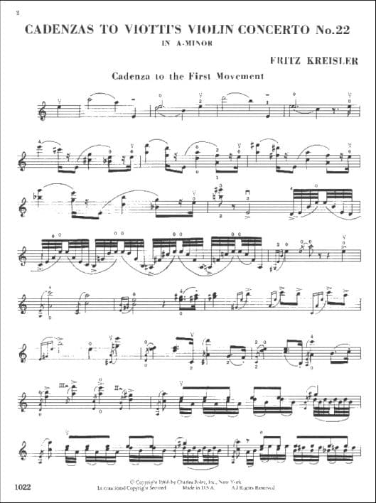 Kreisler, Fritz - Cadenzas to the Viotti Violin Concerto No. 22 in A minor - Carl Fischer Edition