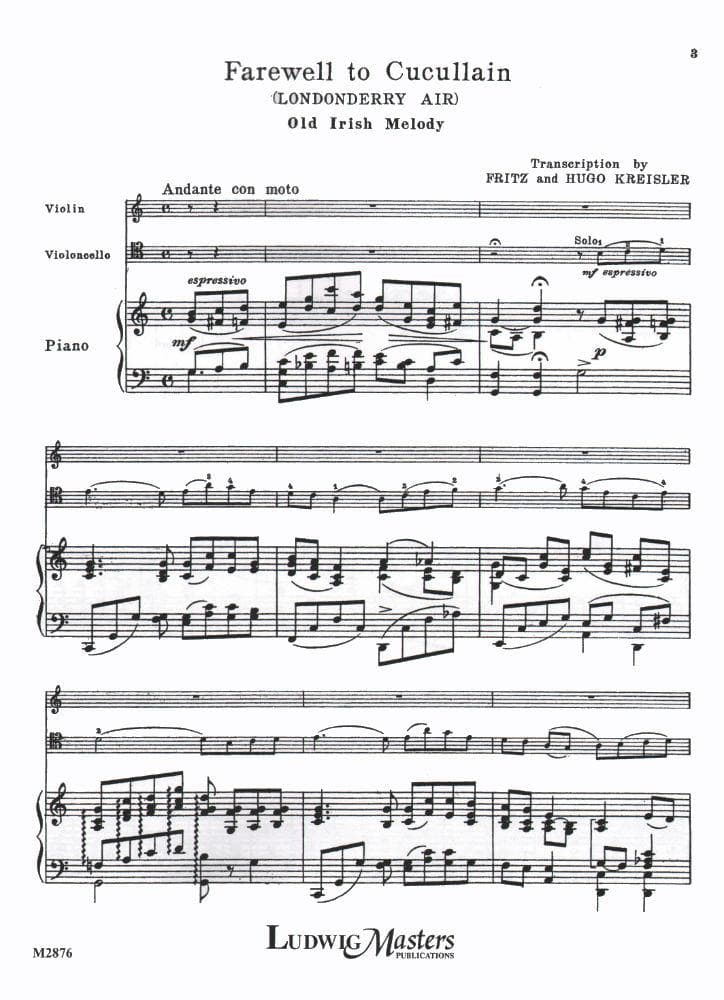 Kreisler, Fritz - Farewell to Cucullain (Londonderry Air) - Violin, Cello, and Piano - transcribed by Fritz and Hugo Kreisler - Masters Music Publications