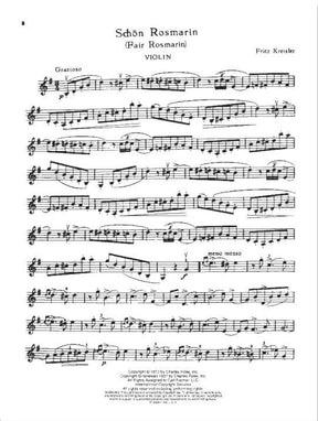 Kreisler, Fritz - Schön Rosmarin - Violin and Piano - Carl Fischer Edition