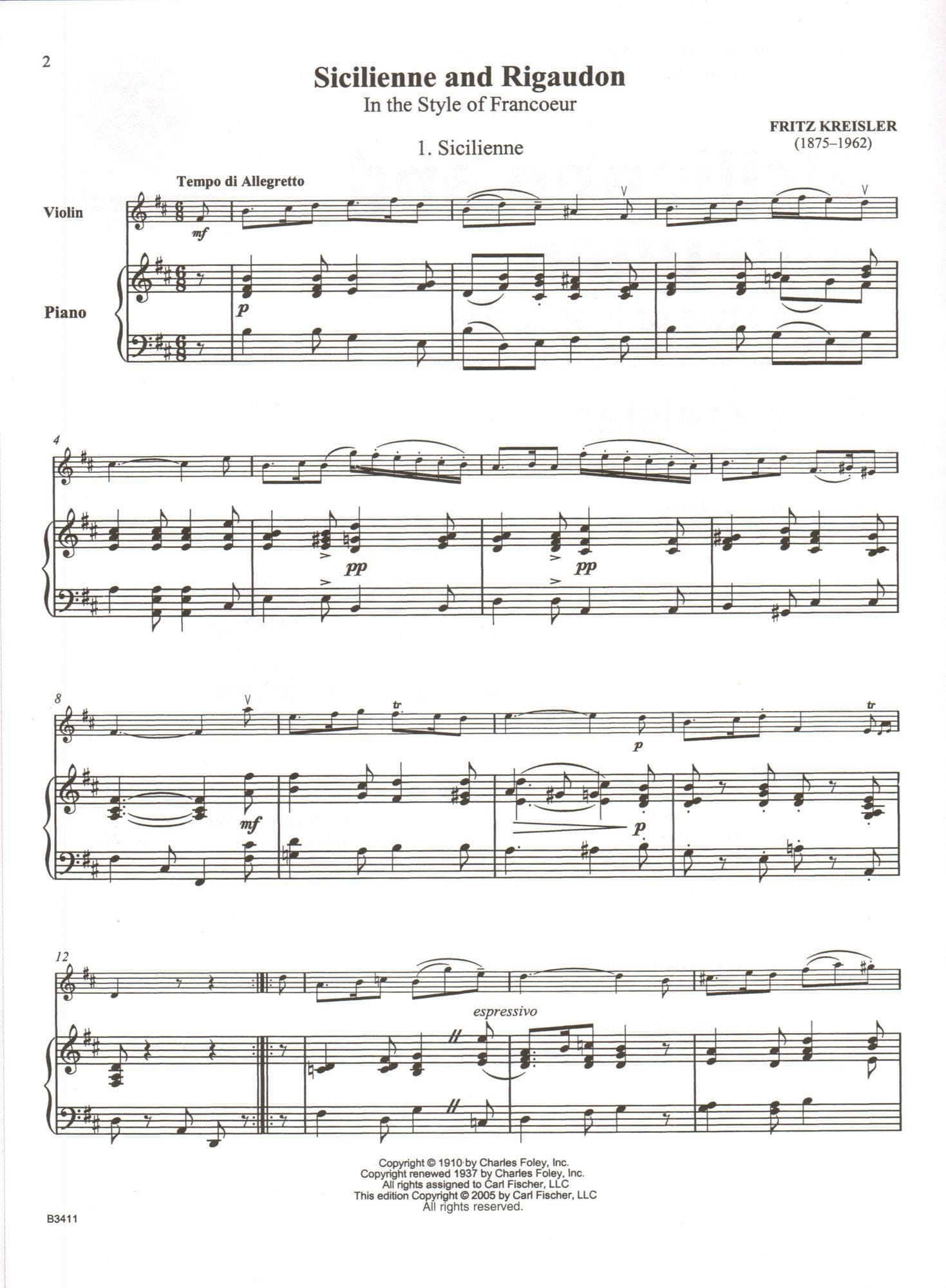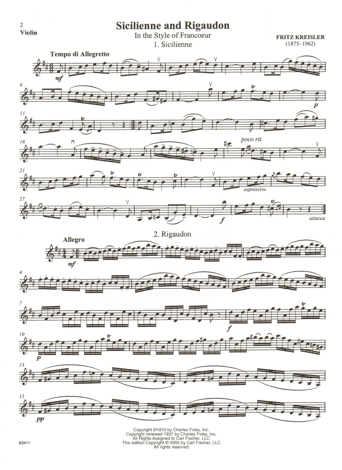 Kreisler, Fritz - Sicilienne and Rigaudon - for Violin and Piano - with Online Audio Access - Carl Fischer Edition
