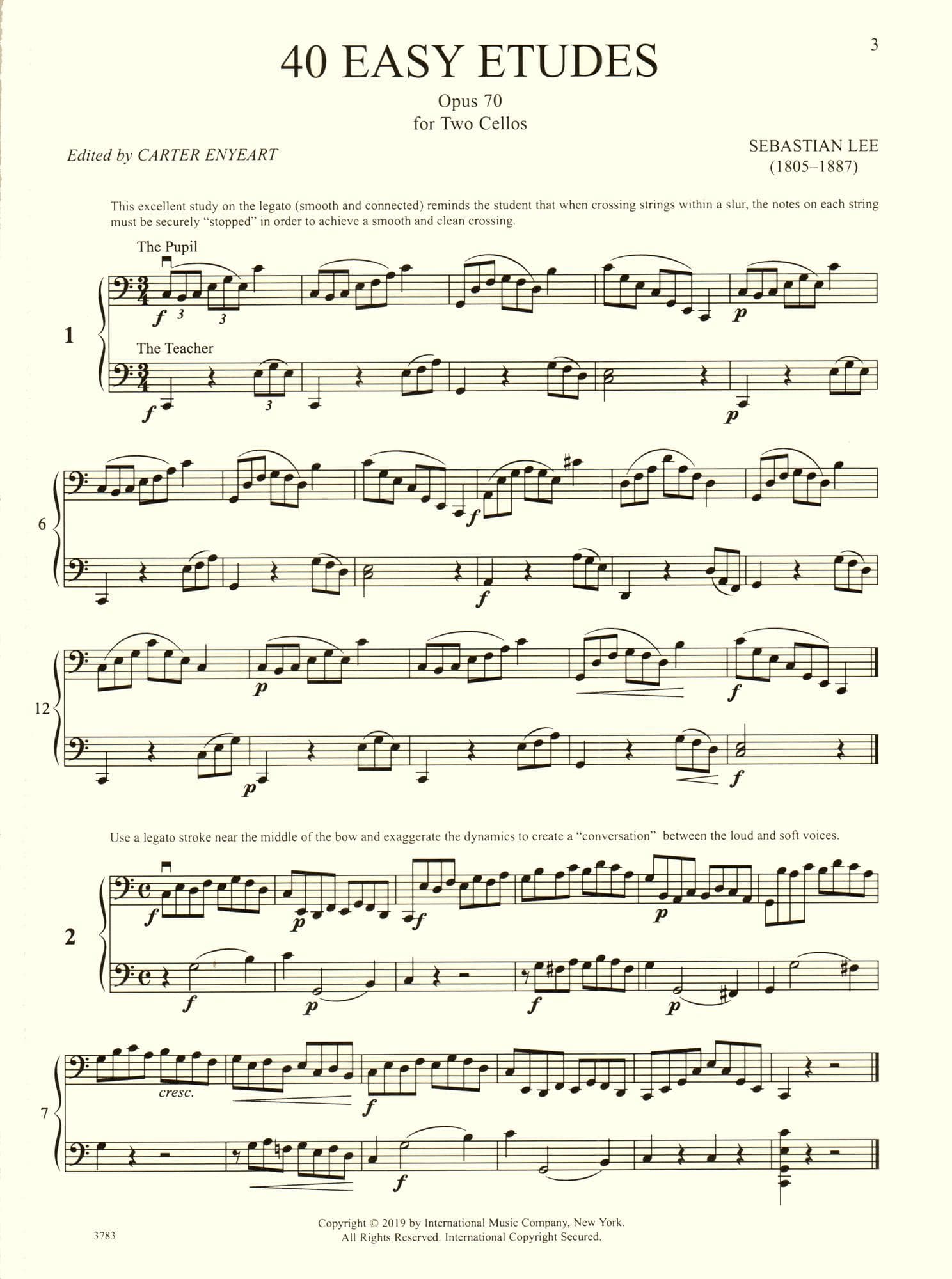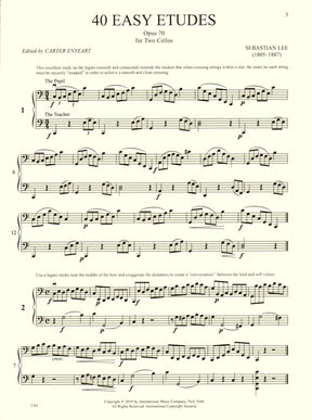 Lee, Sebastian - 40 Easy Etudes, Op 70 - for 2 Cellos - edited by Carter Enyeart - International Music Co
