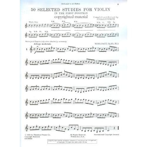 50 Selected Studies in the First Position - Violin solo - edited by Chas Levenson - Theodore Presser Co