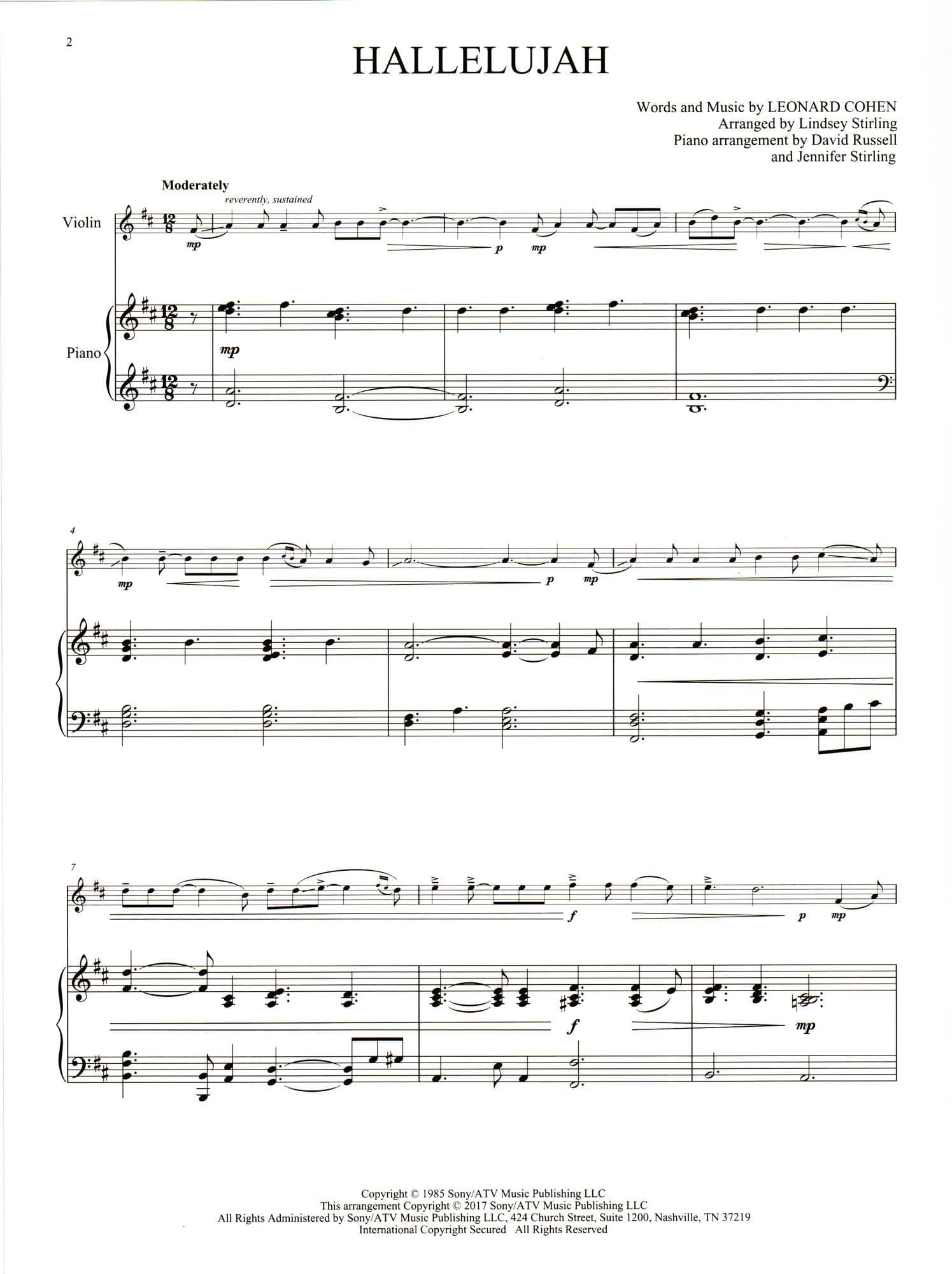 Hallelujah (by Leonard Cohen) - arranged by Lindsey Stirling - for Violin and Piano - Hal Leonard