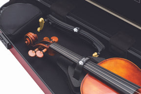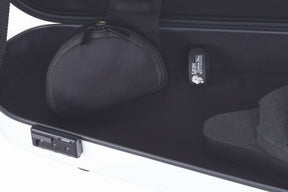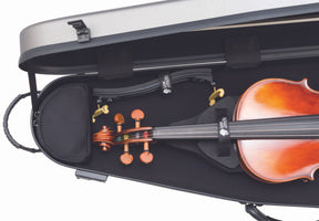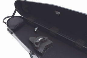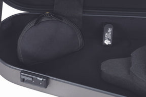 The efficient dart shaped characteristic of the Model 1600 viola case from LION allows it to weigh less than 5 lbs! Featuring premium quality materials and design, the 1600 is the perfect option for the gigging musician favoring minimum weight while traveling to concerts. The 1600 case accomodates 2 bows, has a shoulder rest securing strap, a small accessory pouch and a premium quality protective blanket. Side carrying handle and subway handles allow for easy transport and comfortable shoulder straps with failsafe mechanisms are included for those musicians prefering to backpack their instrument. Unique adjustment design allows the 1600 viola case to accomodate violas from 14" - 18" with ease making this a great investment case for the violist planning to size up in the future!
