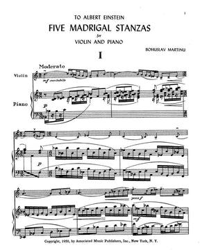 Martinů, Bohuslav - Five Madrigal Stanzas, Op 297 - Violin and Piano - Associated Music Publishers