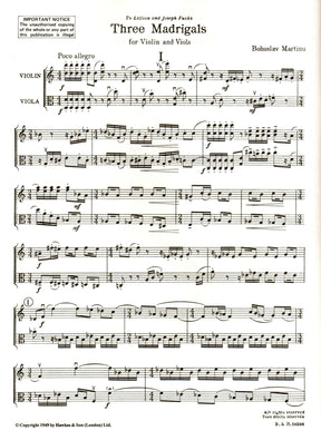 Martinů, Bohuslav - Three Madrigals, Op 313 - Violin and Viola - Boosey & Hawkes Edition