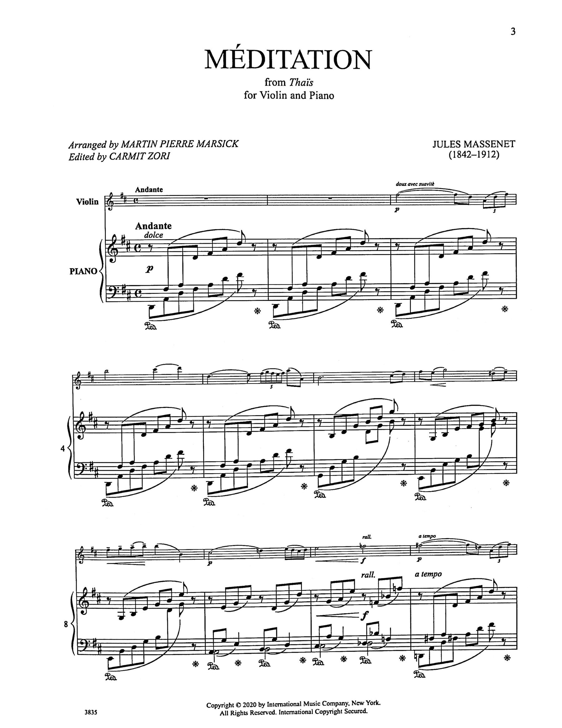 Massenet, Jules - Meditation from Thais - Violin and Piano - Edited by Marsick/Zori - International Music Co.
