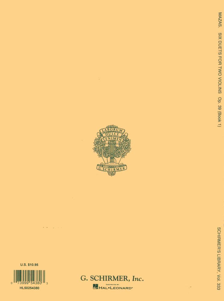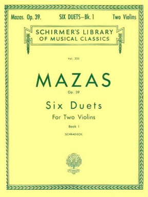Mazas, Jacques Féréol - Six Duets, Op 39, Book 1 - Two Violins - edited by Henry Schradieck - G Schirmer Edition
