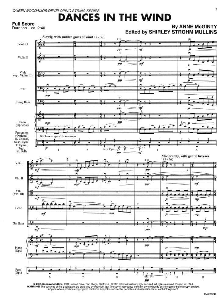 McGinty, Anne - Dances in the Wind - String Orchestra - Score and Parts - edited by Shirley Strohm Mullins - Queenwood Publications (Kjos)
