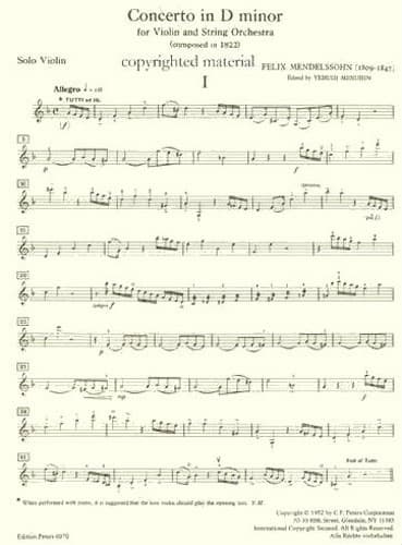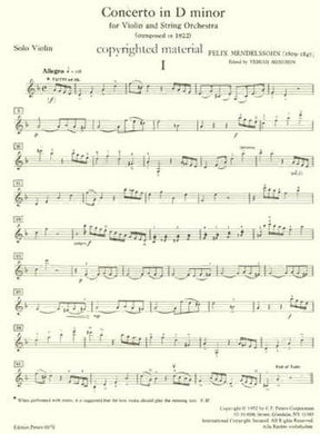 Mendelssohn, Felix - Concerto in d minor (1822) - Violin and Piano - edited by Yehudi Menuhin - Edition Peters