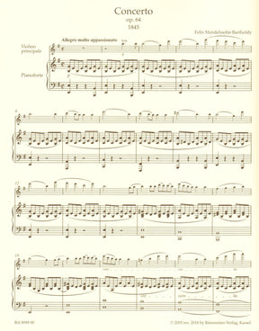 Mendelssohn, Felix - Concerto in E minor, Op 64 - Violin and Piano - Barenreiter Urtext