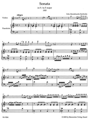 Felix Mendelssohn Bartholdy (most often known simply as Felix Mendelssohn) composed two of these three Sonatas for Violin and Pianoforte when he was very young: the first, in F Major, was written in 1820, when he was 11; the second, Op. 4 in f minor, came just three years later. Mendelssohn seems to have been quite fond of the key of F, because the third sonata in this volume is also in F Major, though he composed it quite a bit later than the other two - almost 20 years later, in fact, in 1838. He revised it the following year. Both versions are included in this edition.