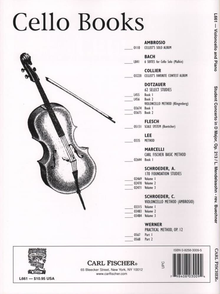 Mendelssohn, Ludwig - Student Concerto in D Major, Op 213 - Cello and Piano - Carl Fischer Edition