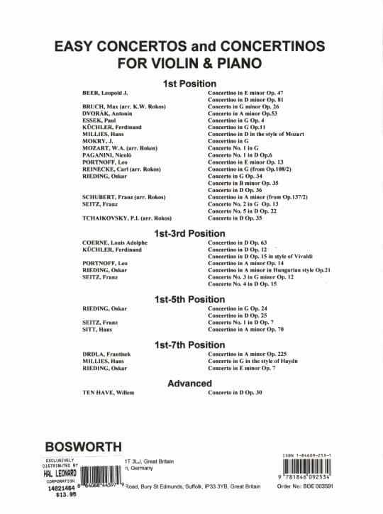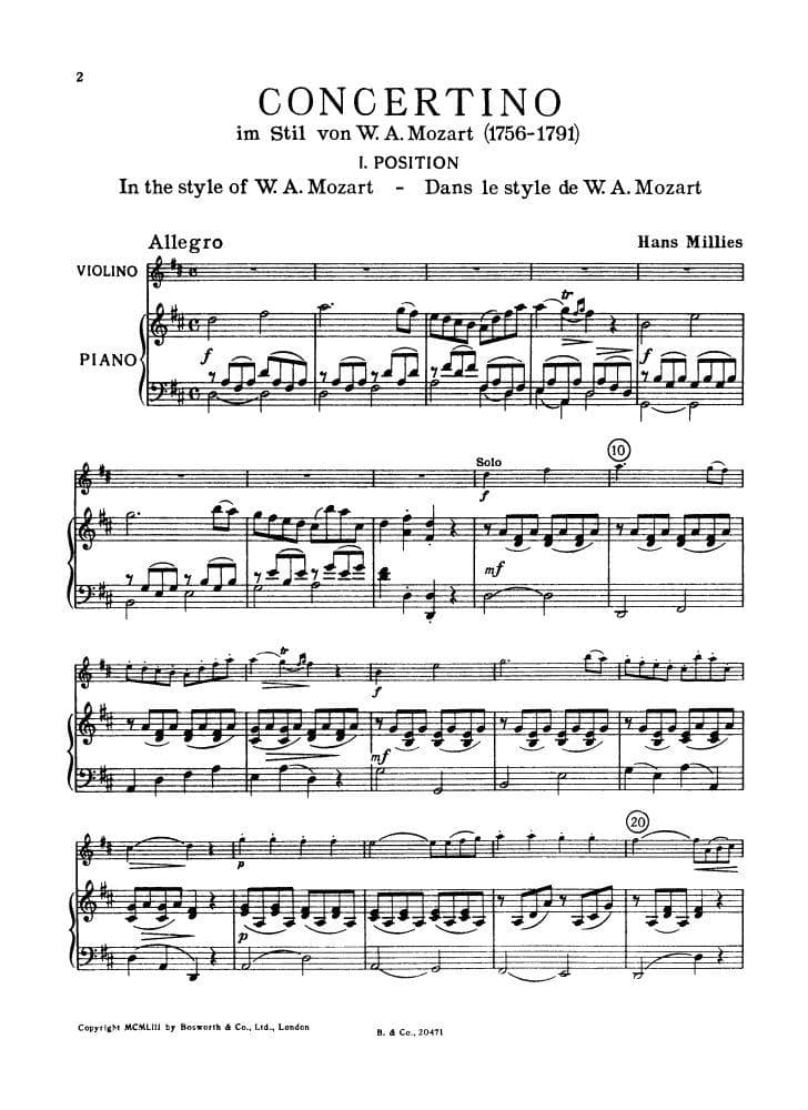 Millies, Hans - Concertino in D Major for Violin and Piano in the Style of Mozart - Bosworth