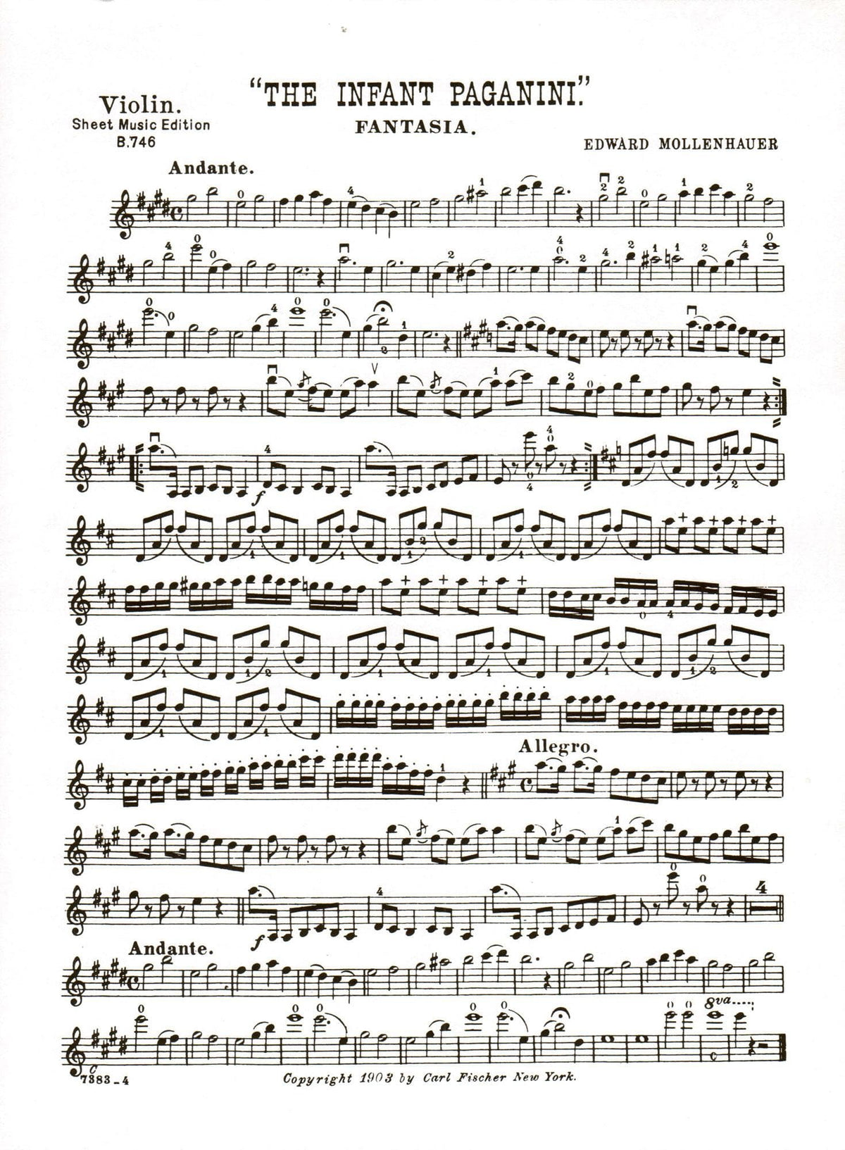 The Mollenhauer fantasia The Boy Paganini is an impressive intermediate show piece. It is a great introduction to virtuoso violin techniques for students who have completed Early Start on the Violin, Volume 4.