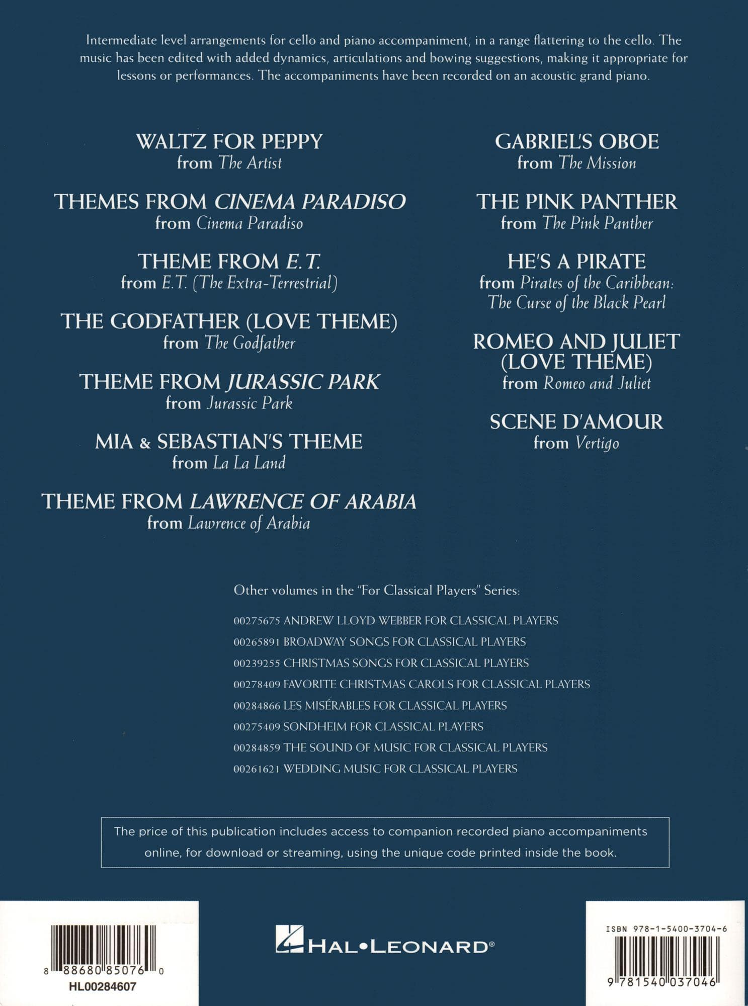 Movie Themes for Classical Players - Cello and Piano - with Online Audio Accompaniment/Sheet Music - Hal Leonard