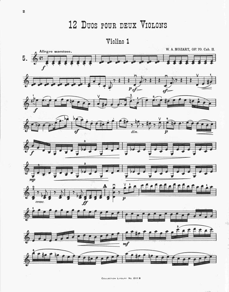 Mozart, WA - 12 Duos, Op 70 (K 152): Volume 2 (Nos 5-8) - Two Violins - Litloff Edition (Peters)