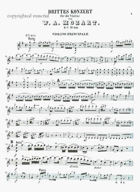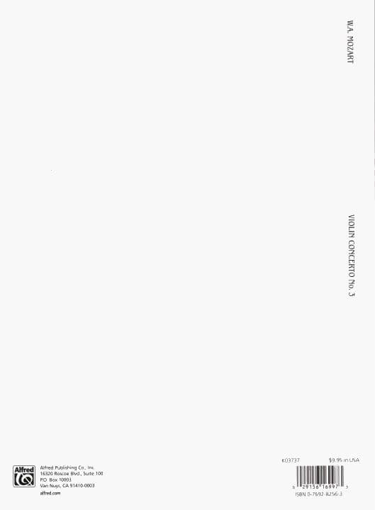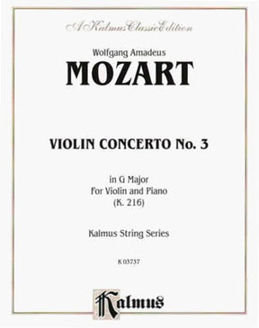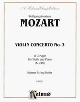 Mozart, WA - Concerto No 3 in G Major, K 216 - Violin and Piano - Kalmus Edition