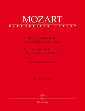 Mozart, WA - Concertone for Two Violins and Orchestra in C Major, K 190 - SCORE ONLY - Bärenreiter Verlag URTEXT