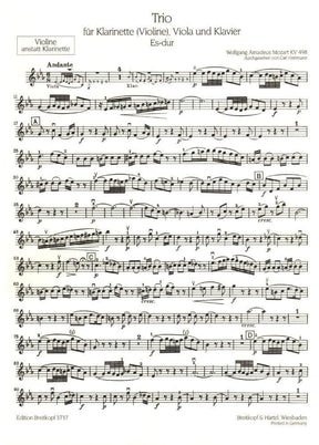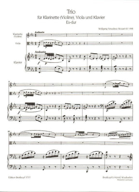 Mozart, WA - Trio in E-flat Major, K 498 ("Kegelstatt") - Clarinet (or Violin), Viola, and Piano - Breitkopf & Härtel Edition