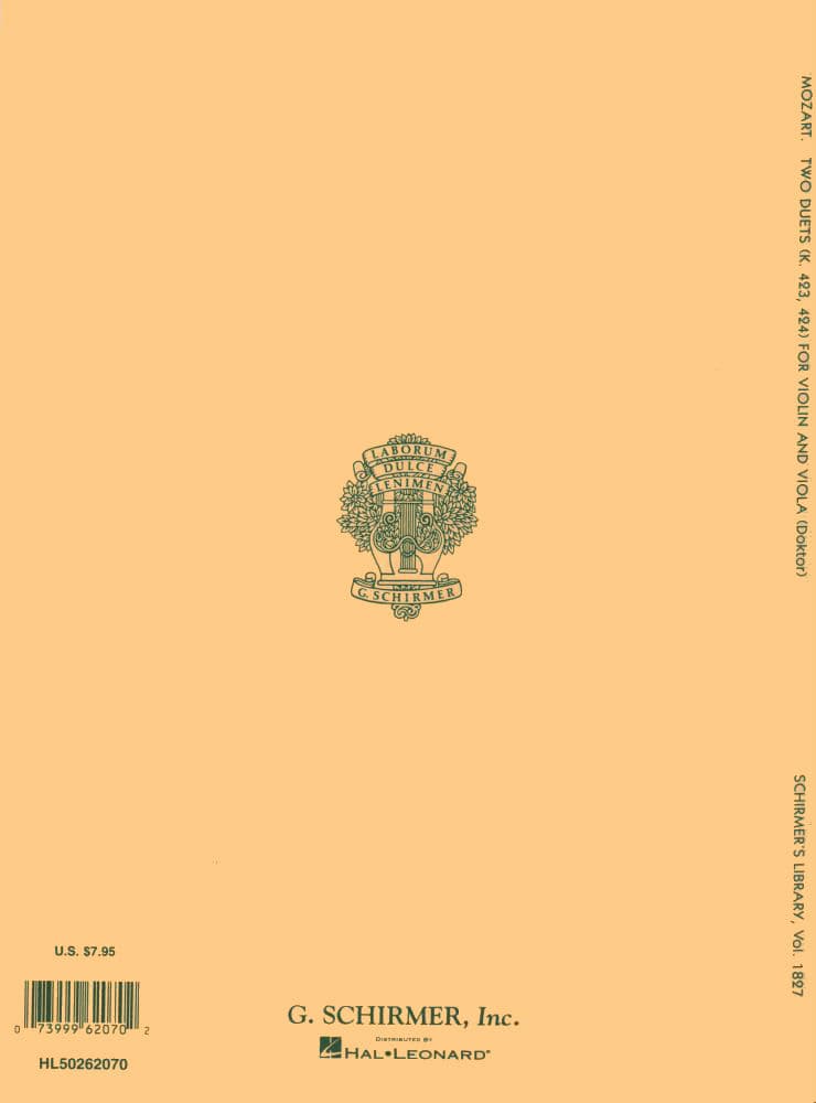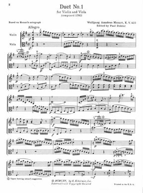 Mozart, WA - Two Duets, K 423 and 424 - Violin and Viola - edited by Paul Doktor - G Schirmer Edition