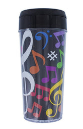 Take your beverage with you – in style! This musician's tumbler holds up to 16 ounces and will keep your beverage warm or cold. Holds 16 oz.
