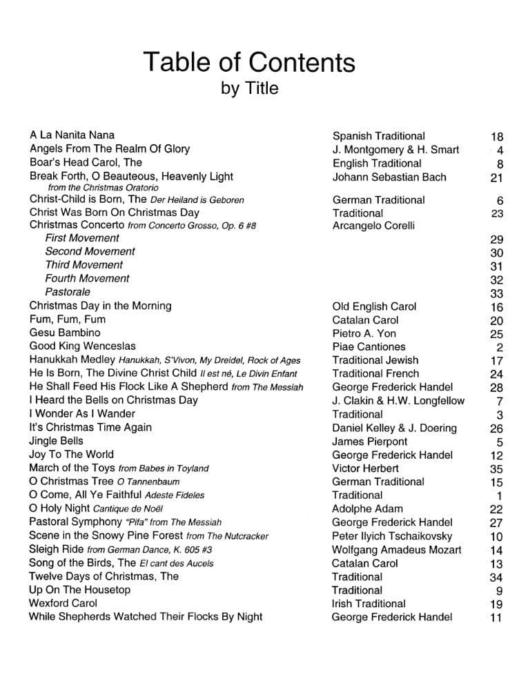 Music for Three: Christmas is a well arranged and flexible holiday quartet collection. Each part is published for a variety of instruments, providing for a wide range of ensembles from the standard string quartet to combinations of strings, winds, and brass. Guitar and Piano accompaniment parts are also available.