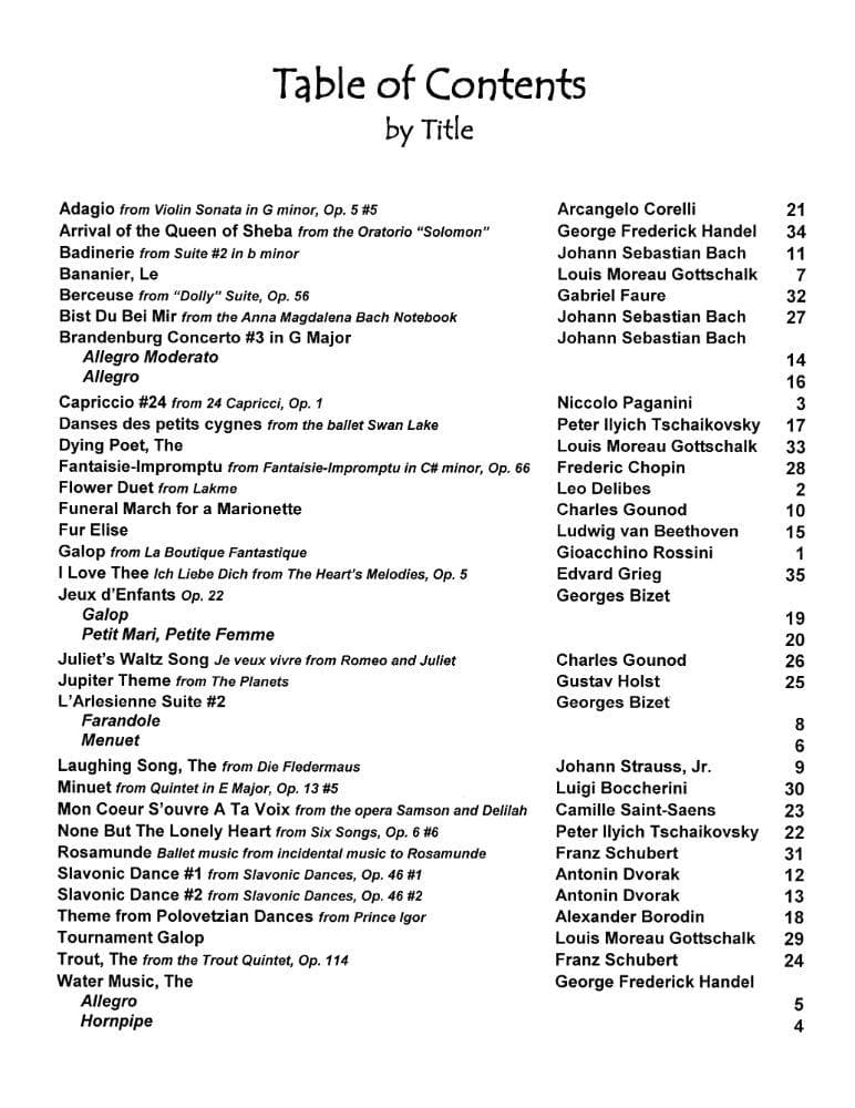Music for Three is a large collection of intermediate difficulty music ranging from modern to baroque and including everything in between. Each book contains one part and each part is published for a wide variety of instruments, providing for a wide variety of possible ensembles. This music is not only great for both the gigging musician, as it is flexible and fairly easy to put together, but it is also good for developing players looking for recognizable and enjoyable ensemble repertoire.