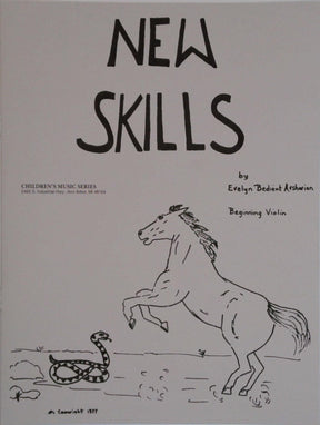 New Skills emphasizes the changing finger 2 positions – natural, near finger 1, and Sharp, near finger 3. To add zest to this work, fun techniques are featured: pizzicato, double stops, harmonics, triplets, etc. Slurs, staccato, and dynamics are possible variations to be added by student or teacher. Each of the 20 short pieces has a workbook-style activity below it, and is to be examined for low and high second fingers, read through by note names, and clapped before it is played. The print is smaller than Evelyn AvSharian’s classic oversized notation, but it is still much larger than standard engraving, making it easier to read and focus on. 20 pages.