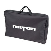 This bag measures at 20 X 14 X 2.5 inches. Fits the Nilton Studio Music Stand.