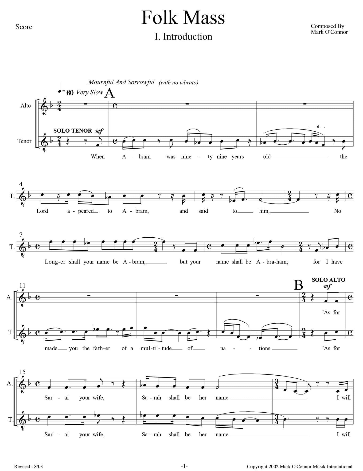 O'Connor, Mark - Folk Mass for Choir - Vocal Score - Digital Download