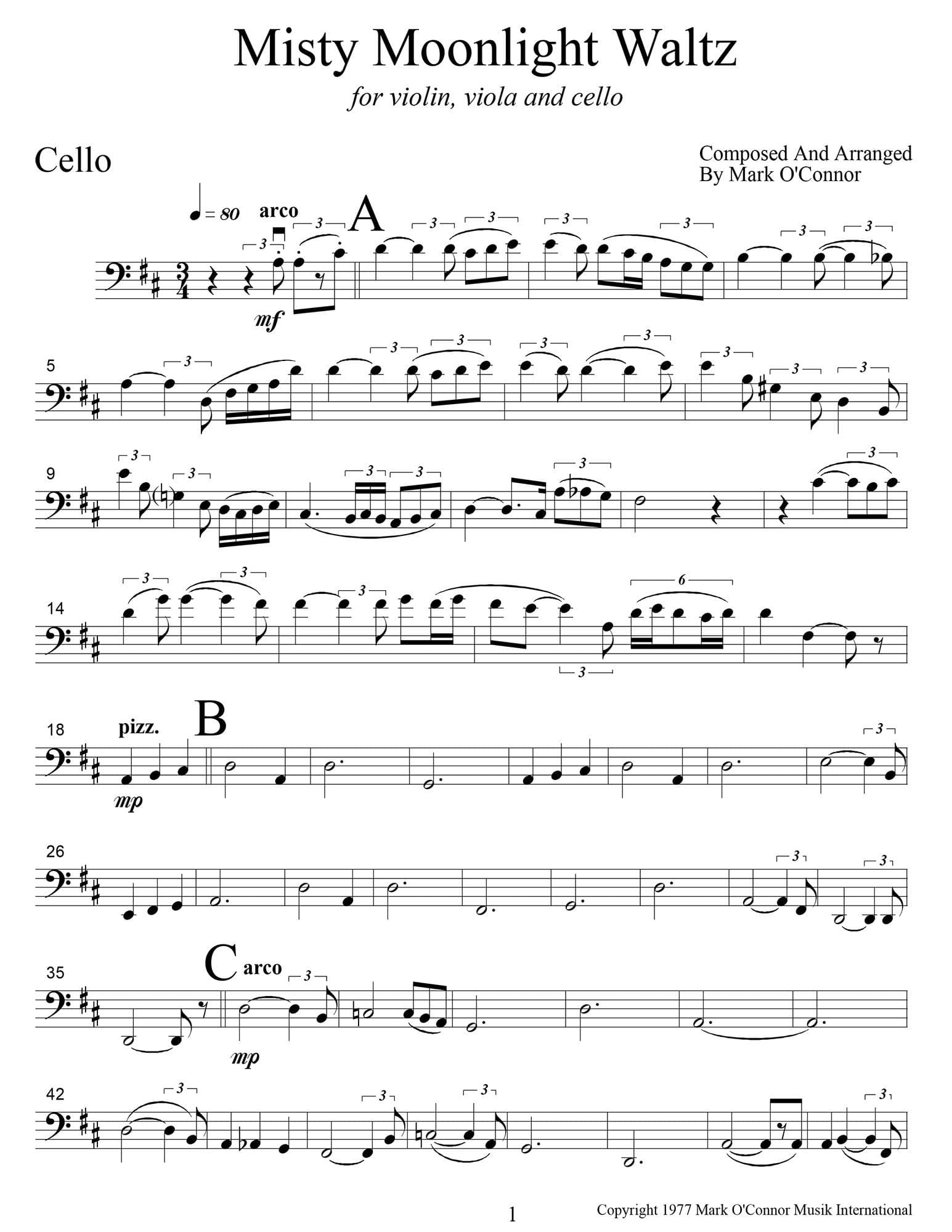 O'Connor, Mark - Misty Moonlight Waltz for Violin, Viola, and Cello - Cello - Digital Download