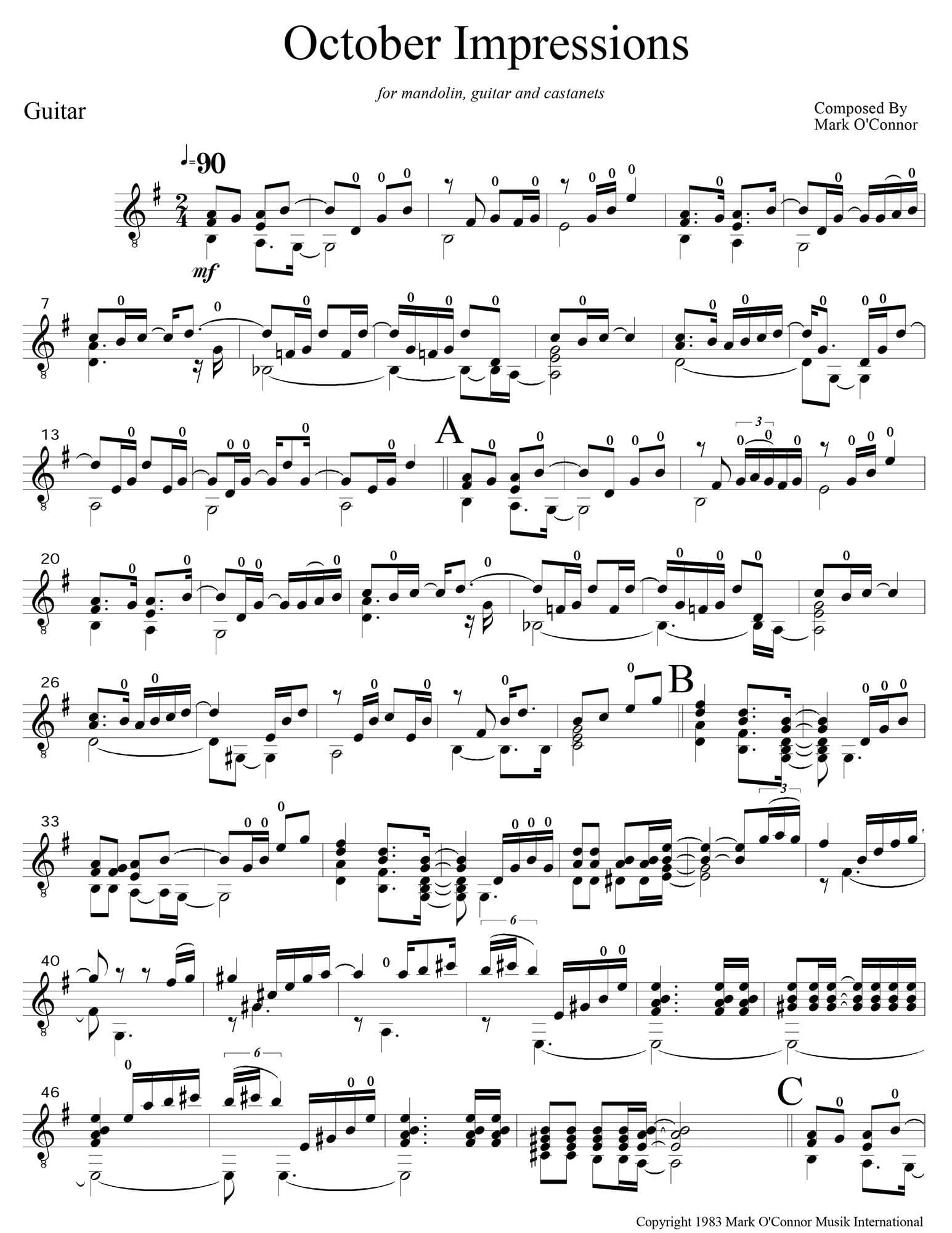 O'Connor, Mark - October Impressions for Mandolin, Guitar, and Percussion - Guitar - Digital Download