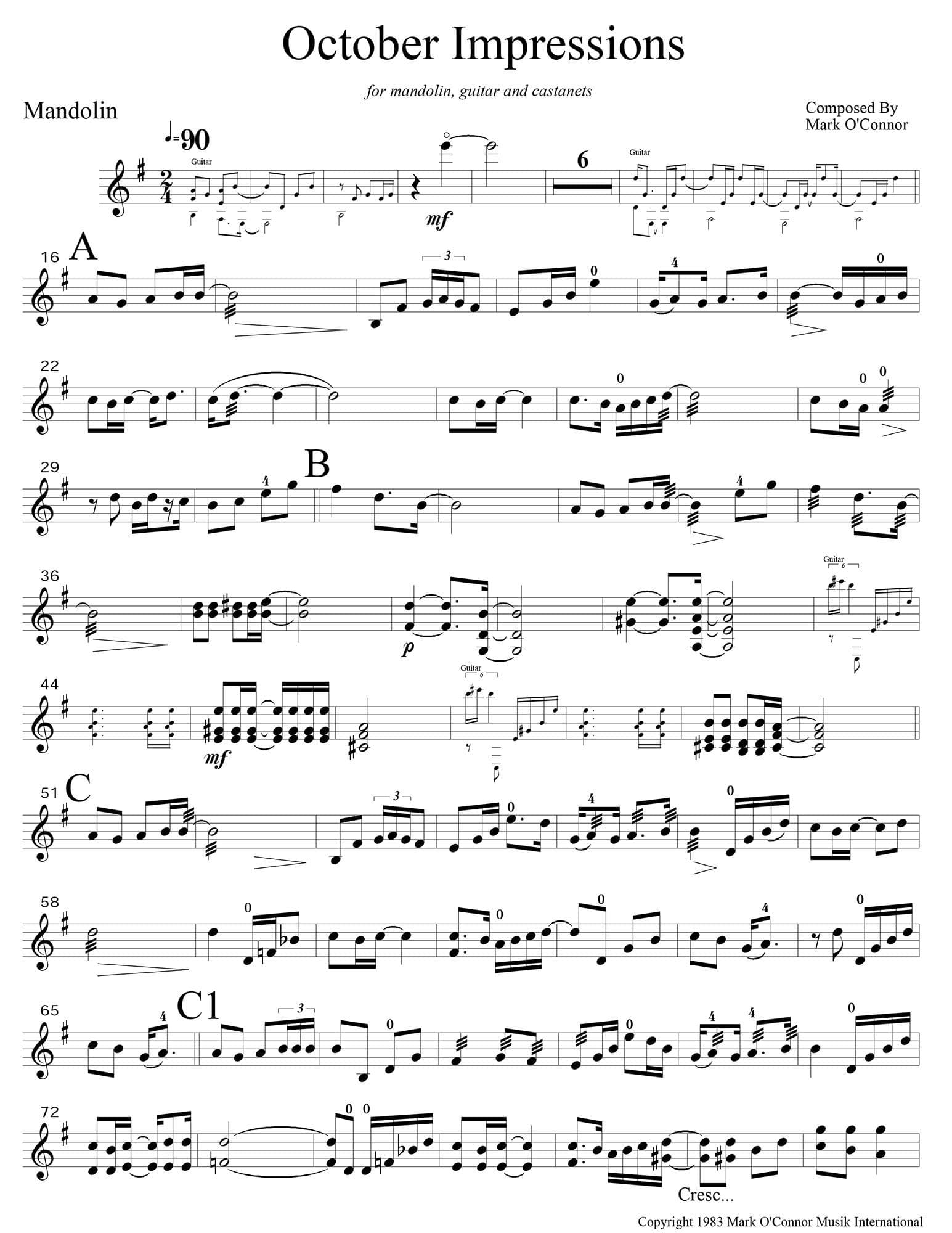 O'Connor, Mark - October Impressions for Mandolin, Guitar, and Percussion - Mandolin - Digital Download
