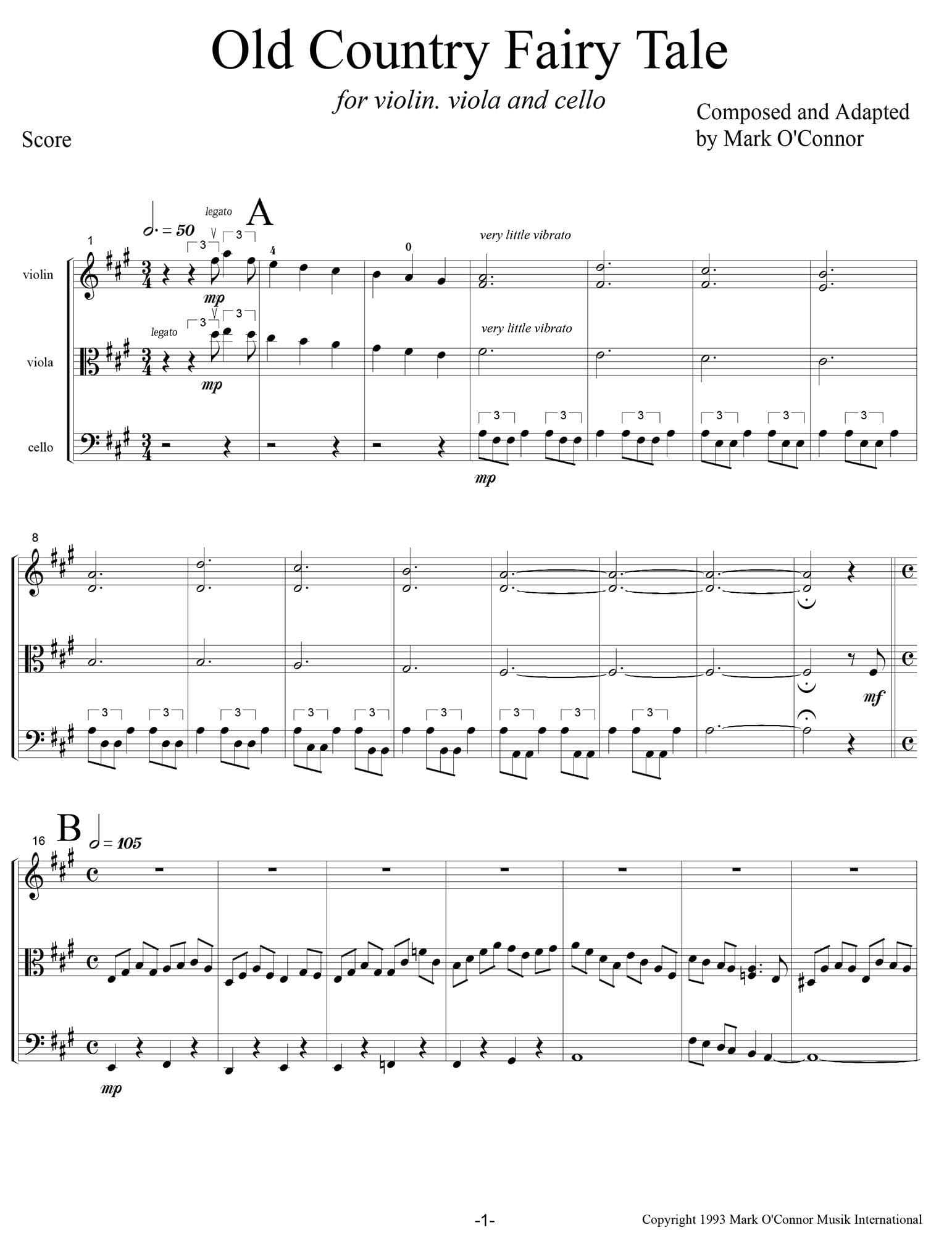 O'Connor, Mark - Old Country Fairy Tale for Violin, Viola, and Cello - Score - Digital Download